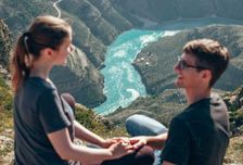 Приезжаем к пещере Нохъо, здесь находится подвесной мост через реку Сулак. Прогуливаемся через рукодельную пещеру и переходим на другую сторону реку. Отсюда видно где река Сулак выходит из горной теснины на равнину. Обедаем в кафе с местной кухней. Заезжаем к базе Исток, откуда отправляемся на прогулку по извилистому ущелью Сулакского каньона на катере