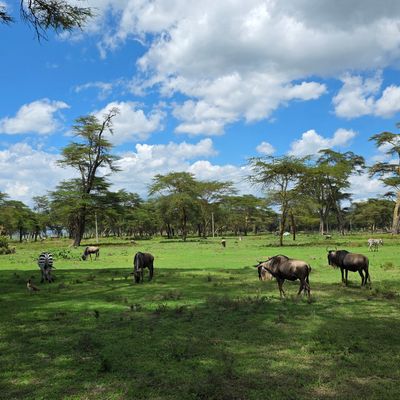 Амбосели поразил нас прежде всего величественными видами на Килиманджаро. Казалось, что сама гора стала фоном для сказочных встреч с дикими животными. В Найваше остановились в отеле, где прямо на территории жили бегемоты – редкое и захватывающее зрелище.