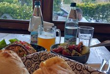 Придорожные кафе зазывают к столу на обед. А мы, конечно, уже будем готовы к трапезе, ведь горный воздух нагоняет аппетит, а грузинская национальная кухня никого не оставляет равнодушным (по желанию за доплату).
