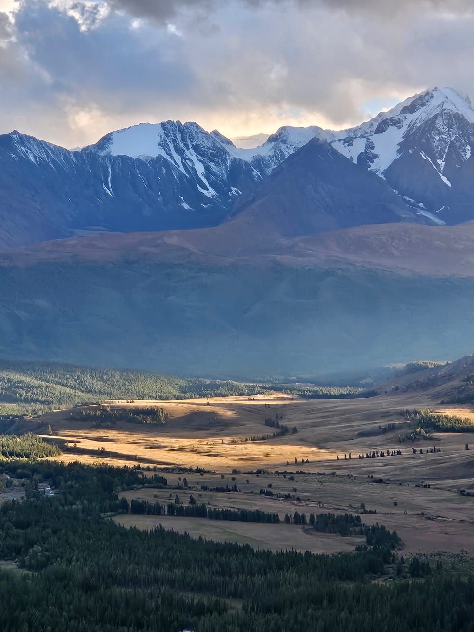 К вечеру доберёмся до села Курайской высокогорной степи, окруженной снежными вершинами Северо- Чуйского хребта.