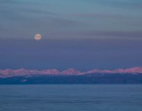 Уже смеркается и появляются звезды, поднимается луна.