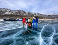 - Прогулка по прозрачному льду Байкала с трещинами и пузырьками