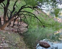 Какой то затерянный мир! Красные песчаные горы,скалы уходят в глубины озера. Вода настолько прозрачная,что видно как плавает рыба.Там особая энергетика.