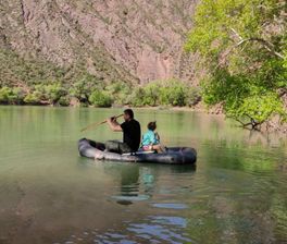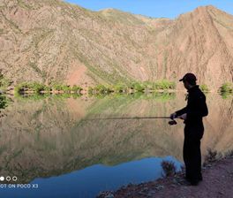 По ущелью вдоль реки Кокомерен поднимемся к оз.Ак-Кёль. Это очень интересное место, с особой энергетикой, будто какой-то затерянный мир! Красные песчаные горы, скалы уходят в глубины озера. Вода настолько прозрачная, что видно, как плавает рыба.