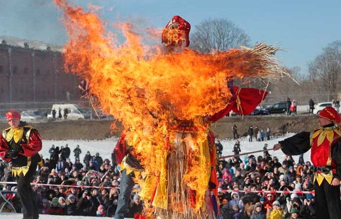 В финале праздника - торжественное шествие участников и гостей праздника к месту сожжения масленичного чучела, масленичный костер и сжигание Масленицы.