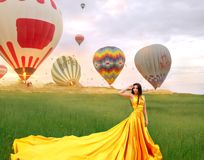 - атмосферная фотосессия на фоне шаров в платьях со шлейфом