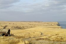 - Песчаный пляж с морским прибоем и морскими далями на реке Волга.