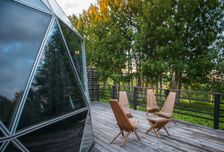 Вы заселитесь в комфортабельный купольный дом, площадью 54 кв. м. Вас будут ждать личная сауна, теплые полы по всей площади, ванна с панорамным видом, Wi-Fi. Или в зеркальный дом: снаружи он смотрится, как зеркало, а внутри вас будут ждать панорамные окна. За доплату возможно оформление домиков в романтическом стиле или ко дню рождения.
