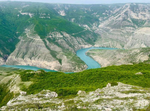 В самом начале нашего пути мы посетим Чиркейское водохранилище. Этот самый крупный водоем на территории Северного Кавказа располагается в узком ущелье реки Сулак, его часто называют морем в горах. Места здесь необыкновенно живописные.
