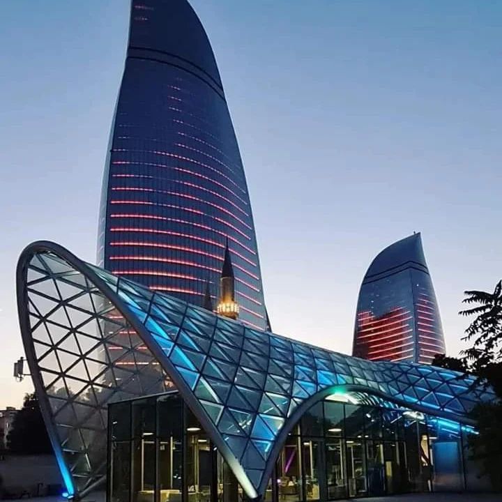 - Вечерний Баку поражает иллюминацией знаменитых башен Языки Огня.