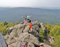 Немного отдохнув и оставив рюкзаки внизу, по железной лестнице мы налегке поднимаемся к южной вершине Двуглавой сопки, называемой Перья. В ясную погоду с вершины видны Златоуст и Айское водохранилище. С Перьев открывается прекрасная панорама на Откликной гребень и Дальний Таганай.