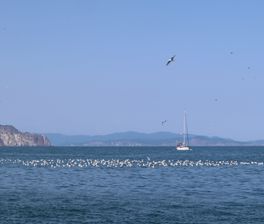 В отеле Начальник Камчатки крутая лестница. И погода на морскую прогулку нам не сильно подфартила. Но в этом тоже был свой шарм. Погода здесь переменчивая. День светло, день пасмурно, так что вещей надо иметь разных.