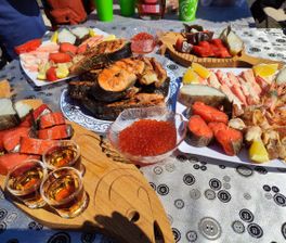 Справочная информация: цена с аудиогидом – 1200 руб./чел, экскурсия с гидом – 1500 руб./чел, с дегустацией 4 видов варенья и иван-чаем – 2500 руб./чел, с дегустацией рыбных деликатесов и икры – 3500 руб./чел.