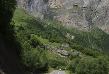 Первая обзорная точка у села Кара-Су, где открывается прекрасный вид на долину поселка, а также вид на Безенгийскую теснину, в которой находится карстовый водопад Тыжынты. Он и будет следующей точкой остановки.
