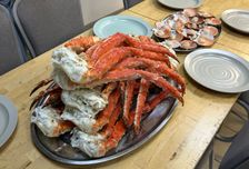 - Ужин с свежими морепродуктами( краб, гребешки, морской ёж)