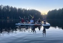 Обязательно выбежим охладиться в озере. Эмоции будут бить через край! Затем будет свободное время погулять по территории и покататься на лодке.