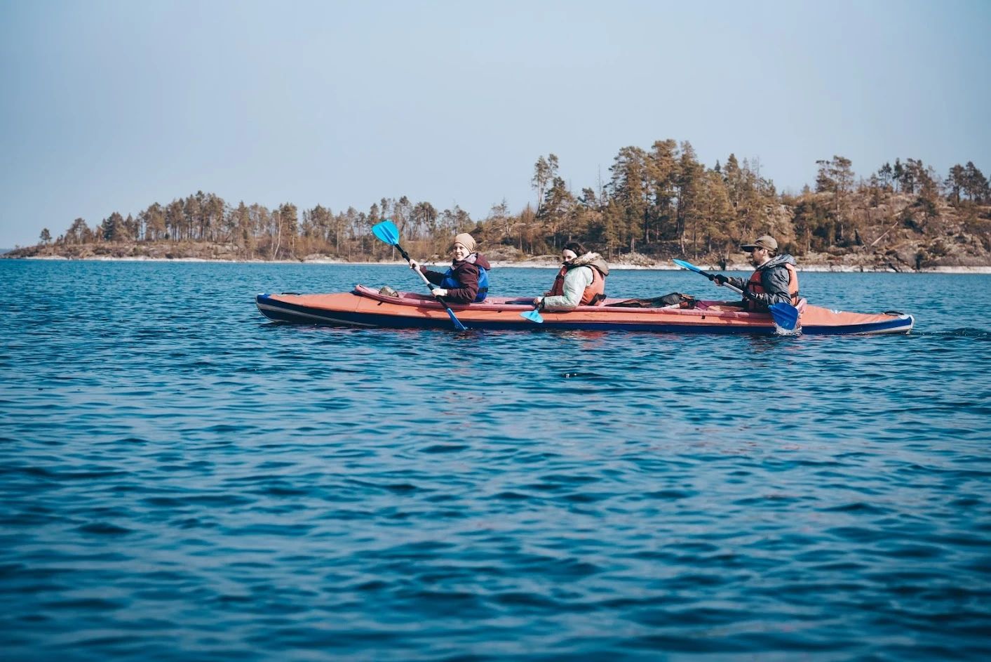 Поход проходит среди шхер — скалистых островков, закрывающих нас от ветра. Это не только красиво, но и комфортно. Идём на современных каркасных байдарках с защитными юбками и гермомешками — всё удобно, безопасно и продумано. Специальная подготовка не нужна — покажем, расскажем и научим прямо на месте.