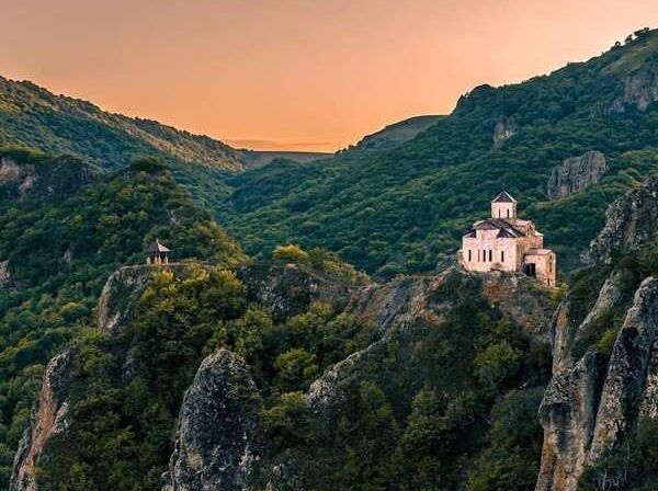 Шоанинский храм. По пути в Домбай поднимемся на вершину горы к действующему храму 9 века. Вы почувствуете особую атмосферу места, полюбуетесь панорамами и сможете ударить в колокол.