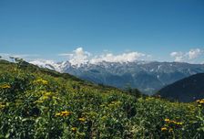 - Альпийские луга. Ароматное разнотравье – визитная карточка Кавказского хребта. Каждый месяц здесь цветет что-то новое и особенное.
