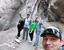 Затем едем в слепое ущелье. Небольшой треккинг и перед нами открылся такой прекрасный вид на уникальную теснину бежевого, салатового и розового цвета с небольшим водопадом