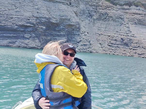 Катаемся мы на крупнейшем водохранилище на Северном Кавказе. Заезжаем в ущелье Где вокруг скалы сжимаются . Садимся на носик Катера по желанию и фоткаемся)) Только в Безопасном месте