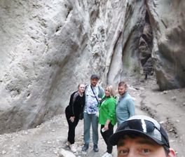 Затем едем в слепое ущелье. Небольшой треккинг и перед нами открылся такой прекрасный вид на уникальную теснину бежевого, салатового и розового цвета с небольшим водопадом