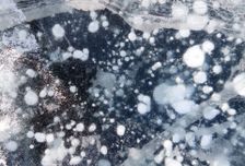 - знаменитый прозрачный лед Байкала, усеянный трещинами и пузырьками