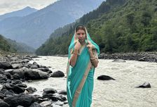 Муж ночевал в пещере с бабой. Он был в восторге. У меня была фотосессия в Сари. Моя мечта примерить наряд сбылась.