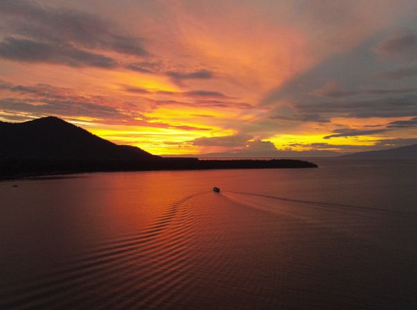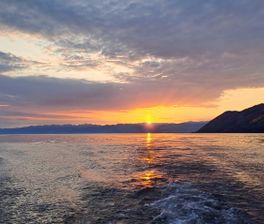 Прогулка на песчаный пляж (самая теплая вода на Байкале вода до +23C). По желанию - катание на катамаранах, сапах, банане. Вечером поднимем бокалы шампанского, поужинаем и увидим потрясающий закат.