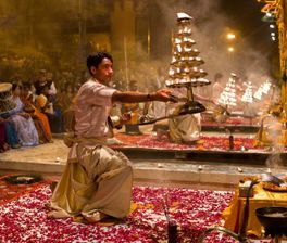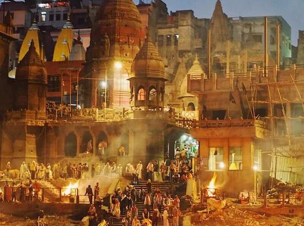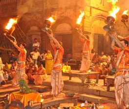 Вечерняя Индуйская молитва и гхаты: Огненная молитва Ганга Маха Арти проходит каждый вечер на Дашвамед гхате. Индусы почитают Ганг как родную мать, этой священной реке устраивается красивый и торжественный ритуал каждый день после заката. Сотни туристов и местных жителей собираются на ступеньках гхата или приплывают на лодках, чтобы посмотреть на огненную церемонию. Мы будем плавать в лодке по всем главным гхатам чтобы увидеть красоту Варанаси с реки и также мы посмотрим на процесс кремации на главном гхате — Маникарника потом мы доплывём до главного гхата чтобы увидеть Огненную вечернюю молитву.