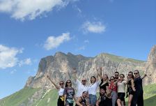 Вся команда встречается в аэропорту Минеральных вод и на комфортабельном автобусе отправляется на Домбай.