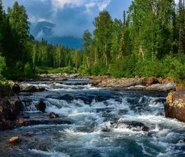 - Далее пеший переход (14 км) до стоянки в долине р. Малый Казыр, где мы разбиваем лагерь и можем отдохнуть у вечернего костра
