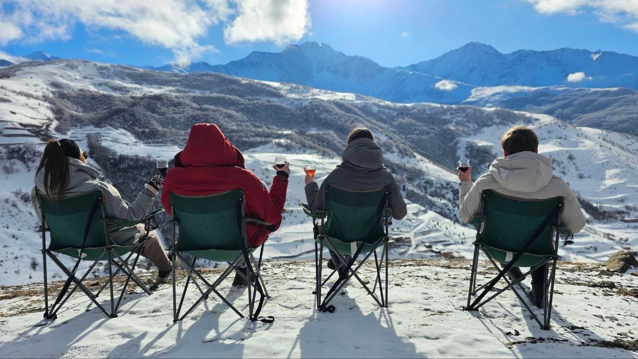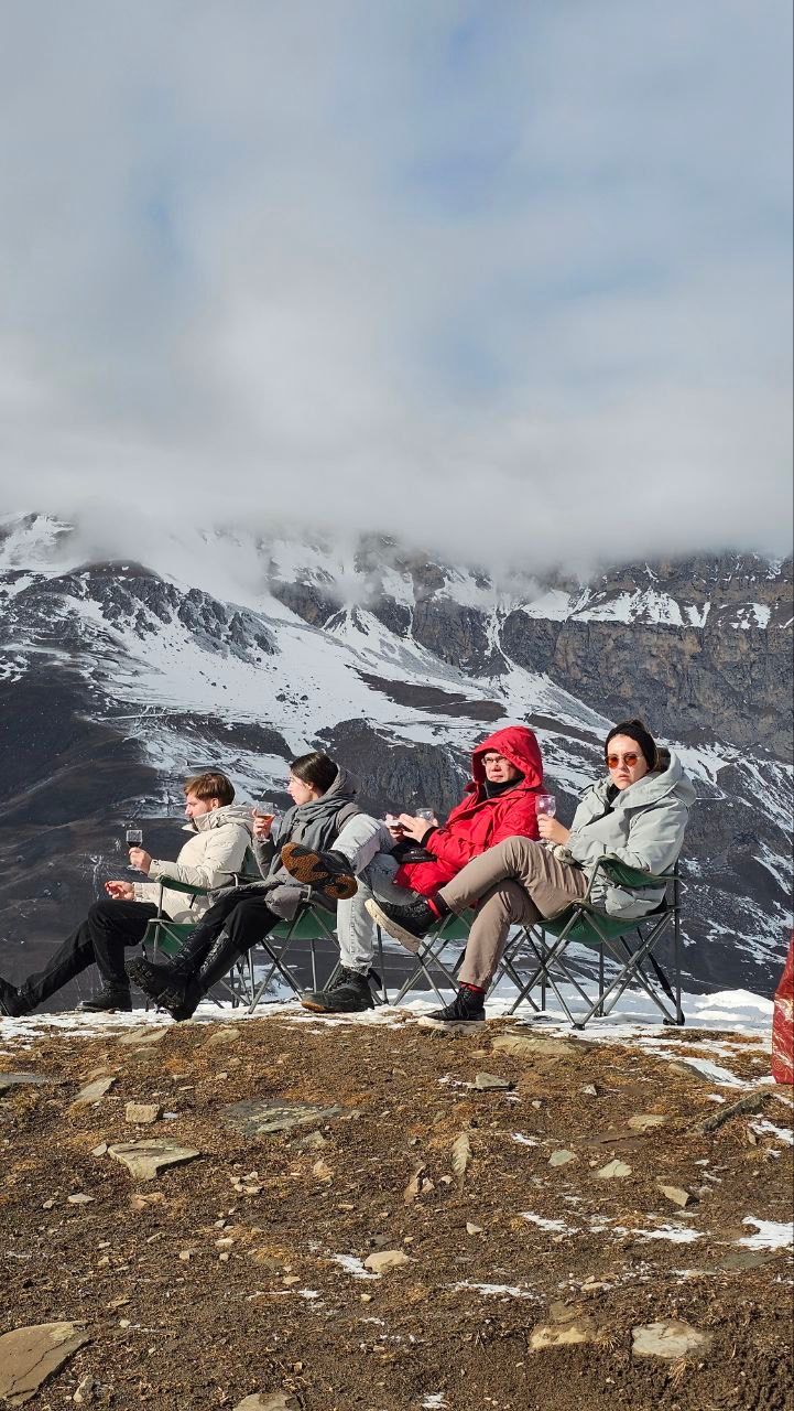 - Атмосферные пикники с дымящимся самоваром на фоне снежных горных вершин