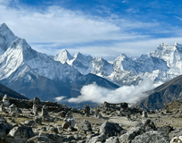 Гималаях.Изюминкой похода станет пересечение сложного перевала Чо-Ла, высокогорного перевала высотой 5420 метров. Этот участок требует технических навыков и предлагает захватывающие дух пейзажи. После этого вы отправитесь в базовый лагерь Эверест, где сможете увидеть знаменитый ледопад Кхумбу и, если позволит погода, увидеть альпинистов, готовящихся к восхождению на гору Эверест