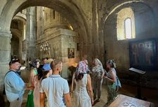Здесь у вас будет возможность ознакомиться с: Кафедральным собором Светицховели (Xi в). Он же, собор 12-ти апостолов. В основании его покоится Хитон Господень. Благодаря этой святыне Мцхета называют вторым Иерусалимом. По легенде, этот храм был воздвигнут над источавшим благовонное масло (миро) пнём того кедра, под которым молилась просветительница Грузии Святая Нино.