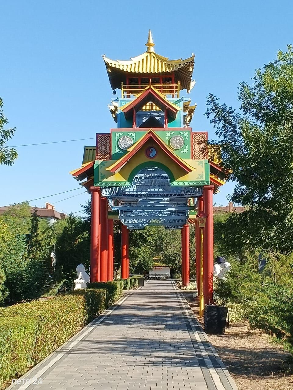 2) Алтн Босх — Золотые ворота Алтн Босх, выполненные в традициях буддийской архитектуры. Золотые ворота были установлены в 1998 году. Высота сооружения составляет 15 метров. Это - символ священного порога, переступив через который человек духовно очищается, обретает уверенность и силу.