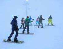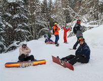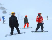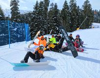 Сноубордисты с палками