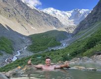 Утром пройдя погранзаставу в Тменикау двинулись до "Кармадонских ванн" по ущелью р. Геналдон. Недалеко от ванн расставили палатки и вечером уже грелись в этих самых ваннах, что компенсировало немного подпорченное настроение, хоть из-за несильного, но непрекращающегося дождя.