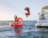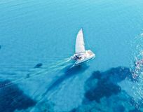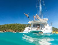 Наслаждение от купания, ныряния с палубы катамарана, сноркелинга