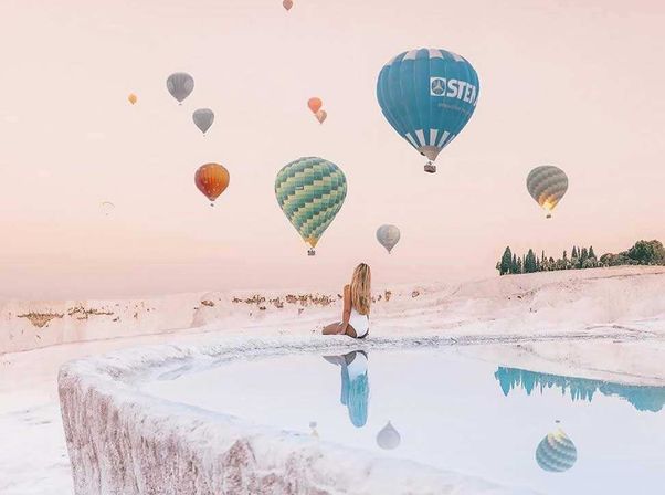 За восходом солнца и пробуждением природы вы будете наблюдать уже в воздухе. Перед вами раскинется панорама бескрайних долин и белоснежных травертин Памуккале. Не спешите: у вас будет более получаса, чтобы насладиться видами и сфотографироваться.