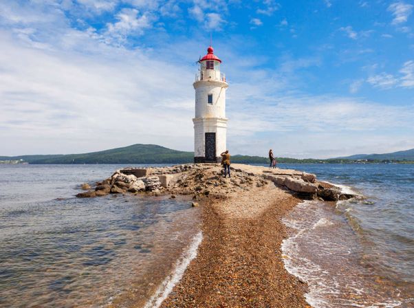сделаешь фото у маяка Токаревского - визитной карточки Владивостока;