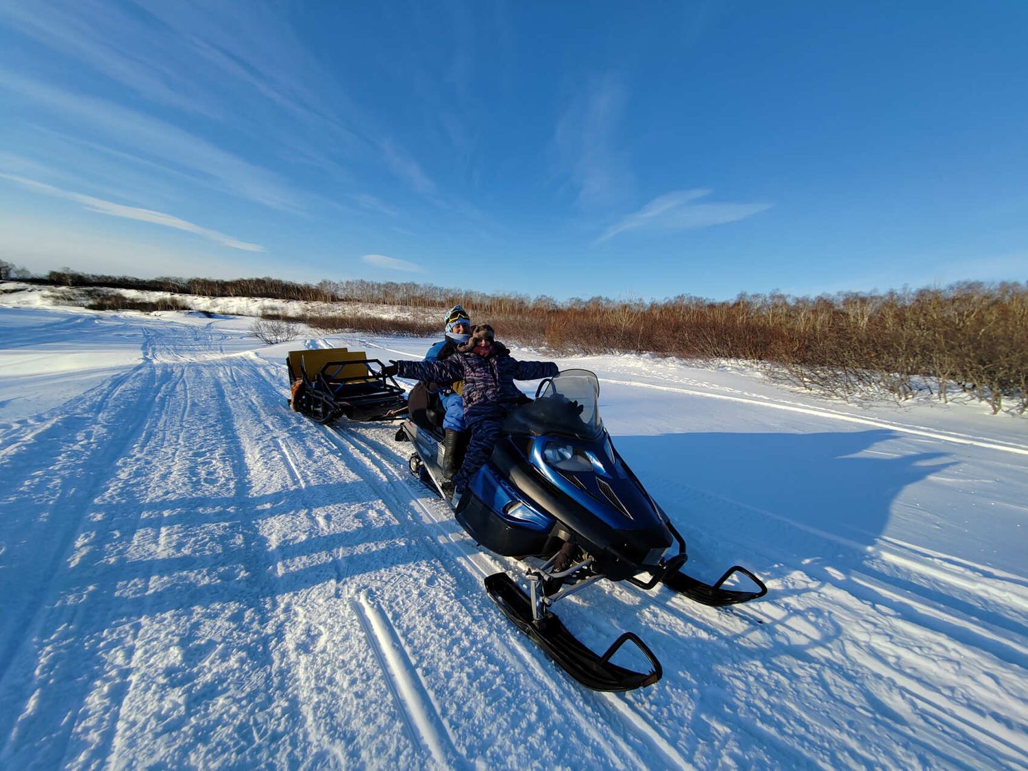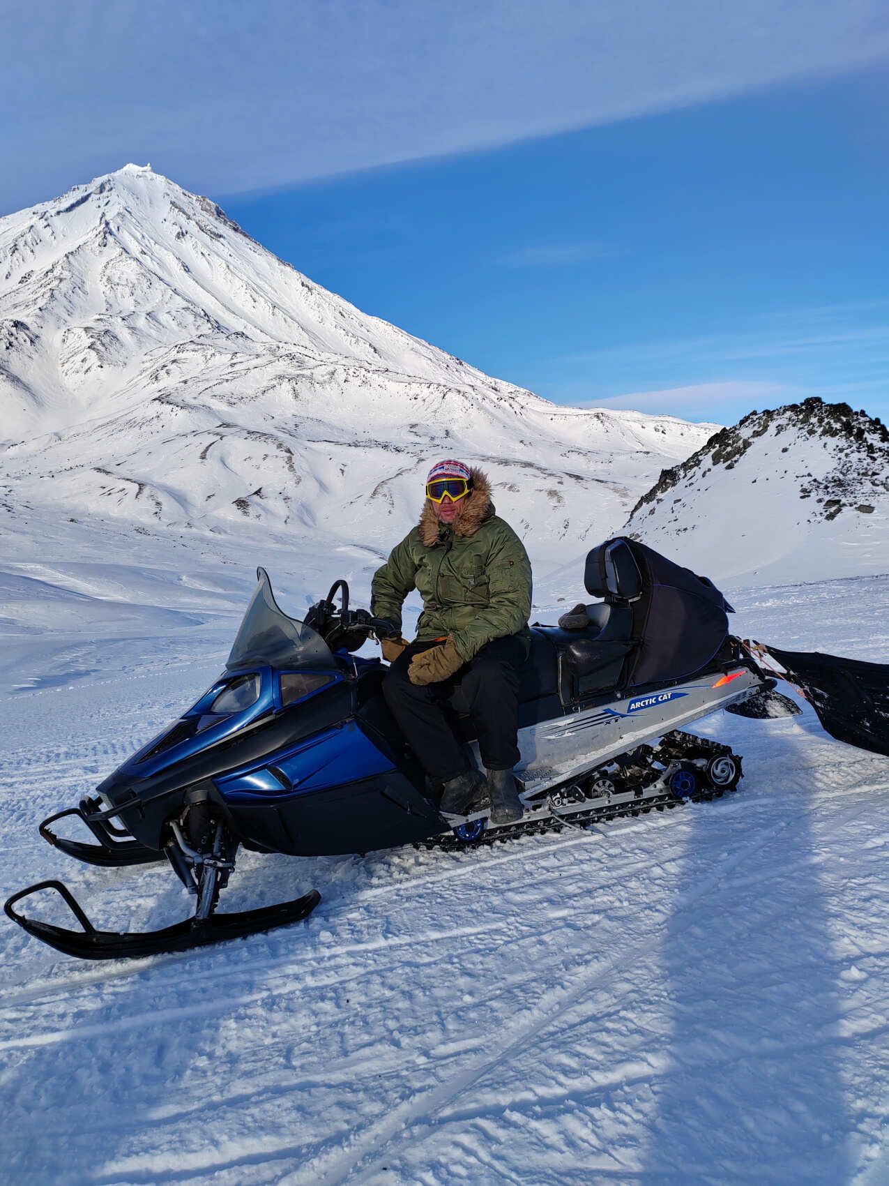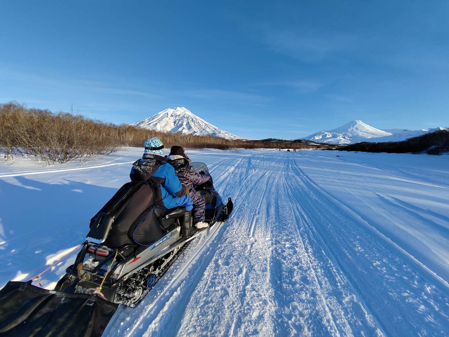 Снегоходная экскурсия по сухой речке к подножию двух вулканов -Авачинский и Корякский. По пути делаем остановки в живописных местах.