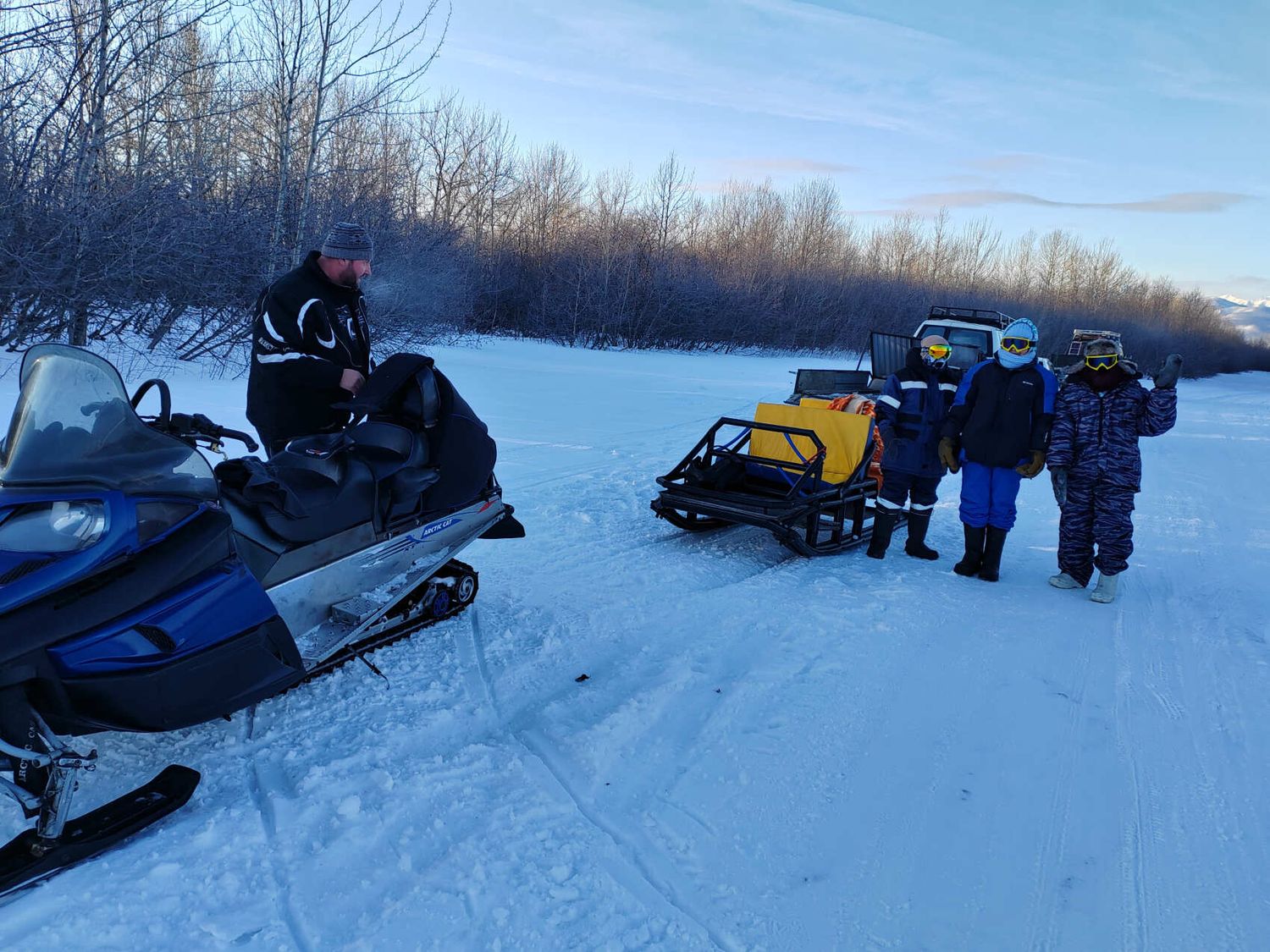 Максимальное количество участников в группе до 5чел . Все участники располагаются в нартах прикреплённых к снегоходу. Продолжительность около 5 часов .