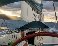 У нас было все: и бессонные ночи от сильнейшего ветра, и сон днем на палубе при приятном звуке мотора, и дельфины, играющие с нами на перегонки, и человек, выпрыгивающий по поводу и без ща борт, были солнечные дни и дни без горизонта. В общем, чтобы это понять, проще поехать и узнать самому.