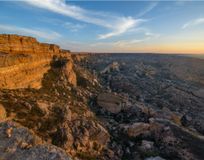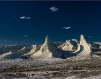 Вся красота сосредоточена в местах разломов земной коры, образовавшихся после подъёма плато Устюрт. Глубокие разломы со временем затянуло осадочными породами, в этих местах получились солончаки, а настоящее чудо это удивительные высокие обрывы, местные их называют чинки.