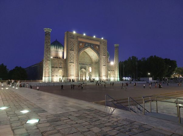 Аэрофлот летает в Самарканд в ночь на субботу в 00:10 с прибытием утром в 06:00. Время в пути 3:50. Более удобен утренний рейс авиакомпанией Utair в 09:30-15:30. Возвращение в понедельник 05:55-08:25. Ориентировочная стоимость билета без багажа 35000 рублей туда и обратно. Из Петербурга самые удобные прямые рейсы по четвергам 10:15-17:05 с возвращением в воскресенье 19:10-22:15. Стоимость билета около 30000 рублей. Прибытие в Самарканд и трансфер в отель. Рекомендуем пройти на площадь Регистан полюбоваться ночной подсветкой. Там же можно и поужинать в шашлычной. Пусть слово шашлык Вас не пугает - мясо всегда отменного качества!