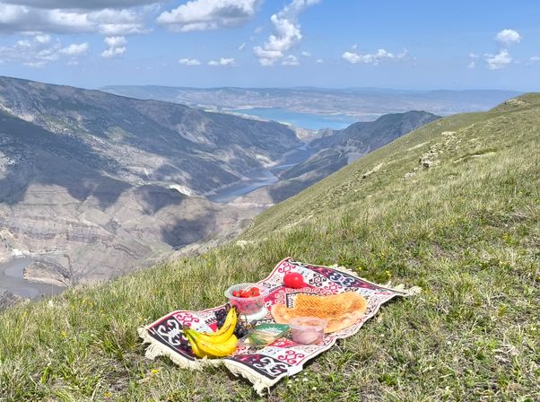 Есть возможность увидеть Сулакский каньон с высоты птичьего полета. Это путешествие на Каранайские высоты. Высота смотровой здесь внушительная, 1457 метров над уровнем моря. Вот отсюда я покажу визитную карточку Дагестана — окруженный горами Сулакский каньон с ярко-бирюзовой водой. Раскрою, как он был образован и с какой известной на весь мир достопримечательностью его чаще всего сравнивают. Насладимся потрясающими видами окружающих гор и поговорим об истории этого гигантского сооружения. Далее проедем Гимринский тоннель и спустимся к месту слияния рек Аварское койсу и Андийское койсу, то есть откуда берет свое начало река Сулак. Желающие могут покататься на катерах по каньону. Потом посетим мемориальный комплекс Ахульго- памятник истории Кавказской войны и обратно в Махачкалу .