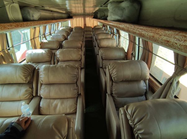Отправьтесь в расслабляющее и живописное путешествие, воспользовавшись нашим автобусом Experience Luxury Travel: из Катманду в Покхару на диване, который идеально подходит для путешественников, ищущих комфорт, стиль и первоклассные сухопутные приключения. Избавьтесь от стресса, связанного с авиаперелетом, и насладитесь прекрасными пейзажами Непала, не выходя из комфортабельного роскошного дивана. Наша поездка на роскошном автобусе предлагает вам раскладные диваны, кондиционер, развлекательные системы, чистые бортовые туалеты и вежливый персонал, который