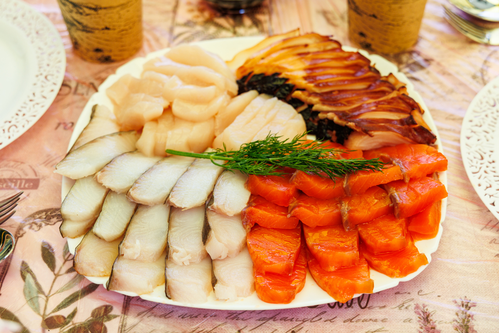 Примерное меню (может меняться в зависимости от меню ресторана): крабовый суп с яйцом, салат Сябу-сябу (свинина, овощи, руккола, соус сябу-сябу), камбала жареная (камбала филе, соус тенцую), морс.