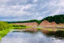 - Опоки. Высокий берег реки Сухоны, открывает нам разноцветные пласты, создавая живописную картину.